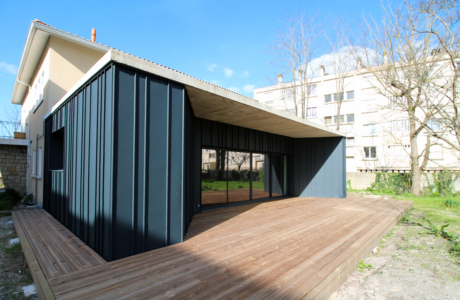Le parti pris architectural est résolument contemporain. Il s’inscrit dans une rupture, plutôt que dans un mimétisme de la maison existante.